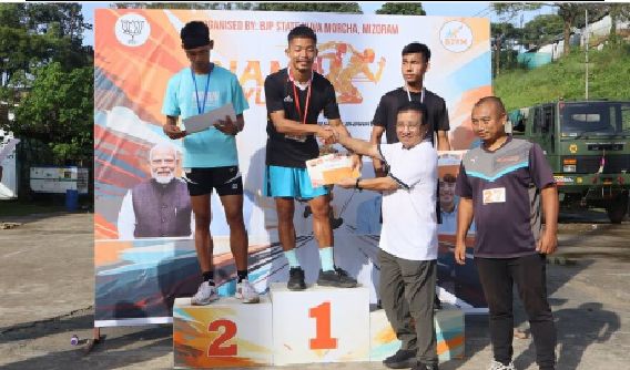 BJP Mizoram chuan Prime minister Narendra Modi pianchampha denchhena thalaite tana BJP hmalakna kal zelah Inrinni khan Aizawlah marathon – Namo Yuva Run an buatsaih a. Lalhmunmawia, Mualpui Salem Veng chu pakhatna a ni.