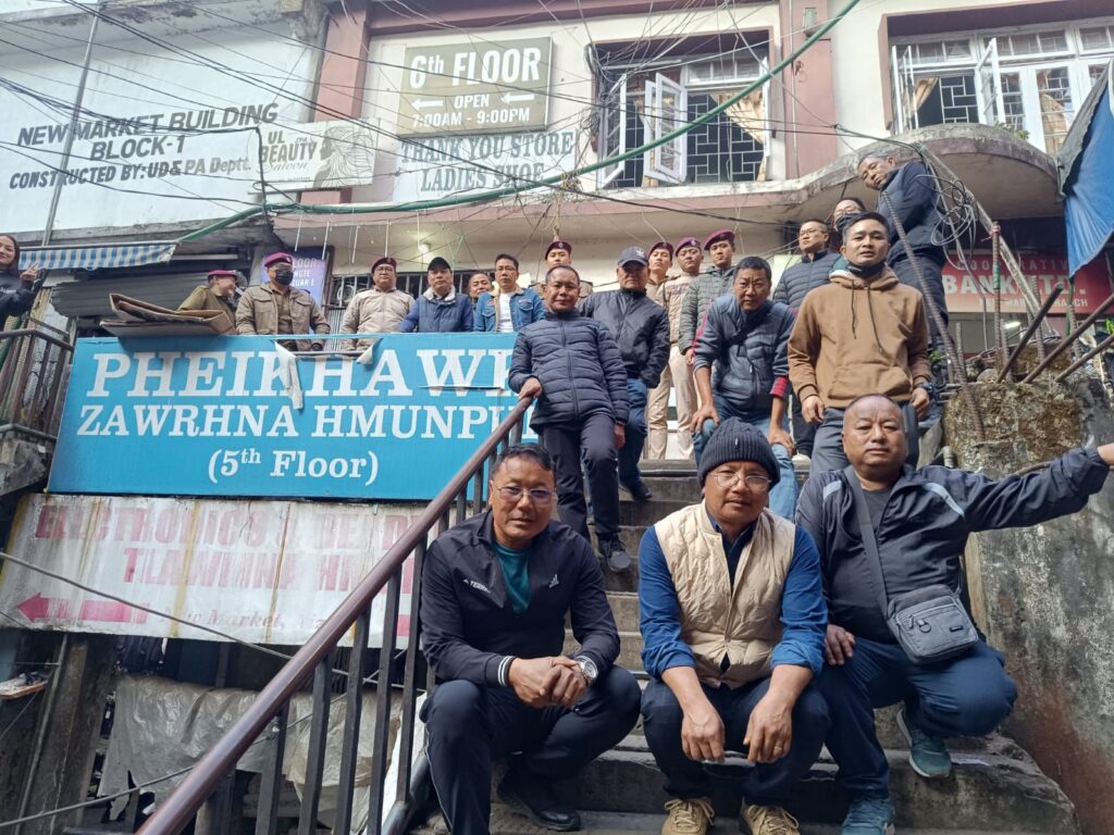 Central YMA office bearer te kaihhruaia group 5 a inthenin Chanmari atanga Sipai Lammual hmar lam gate inkar, bazar leh a chhehvel fangkualin halpuah leh halmawi zuar an awm leh awm loh an enfiah a. Dawrkaite chu sawrkar phal loh thil halmawi chi hrang hrang zuar lo turin an ngen kual nghal bawk.