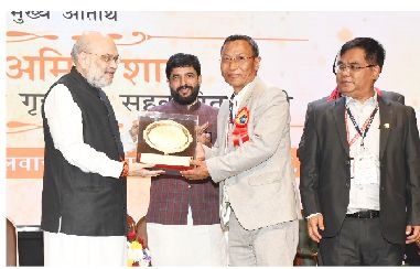 Union Cooperation minister Amit Shah hnen atangin Apex Bank chairman Lalnunsanga leh chief executive officer A Lallungmuana ten an dawng. Mizoram Cooperative Apex Bank chairman hi NAFSCOB Board of Director nilai mek a ni.