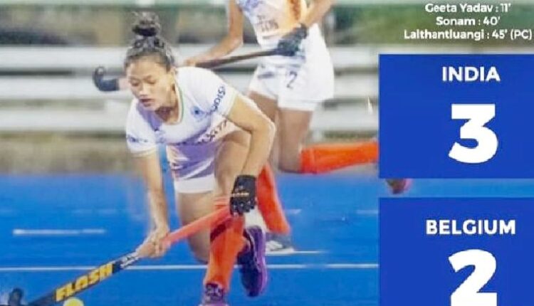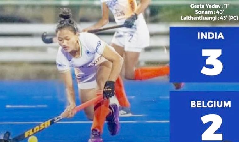Belgium rama inkhelah hian tan atanga minute 11-naah Geeta Yadav chuan India tan goal a thun a; Belgium chuan rawn nawrletin minute 25-na leh 34-naah India lamah goal khunginin hma an hruailet.