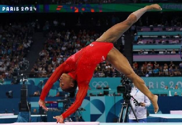 American gymnast Simone Biles chuan Inrinni khan Bercy Arena, Paris-ah Olympic Gams kal laia a gold medal pathum a hlawhchhuak leh ta a, Olympics Artistic Gymnastics women’s Vault final-ah 15.300 average score chungin Olympic gymnastics chanchina gymnast ropui a nihna a nemnghet leh sauh.