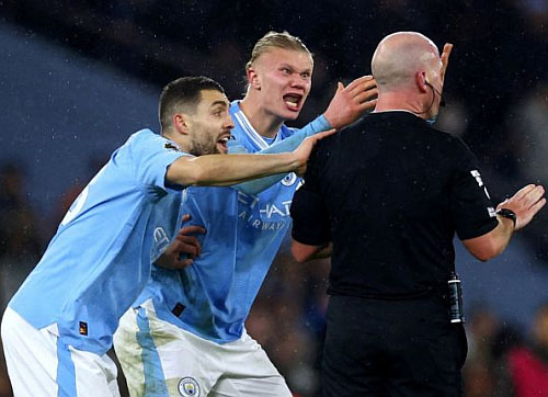 December ni 3 Premier League inkhela Tottenham Hotspur nen 3-3-a an inhnehtawk tum khan hun tawp hnaih tawh lamah Erling Braut Haaland tihtluk ni mah se referee Simon Hooper chuan ham loin khelh chhunzawm tura hriattirna play-on sign a phar zet a, Jack Grea-lish-a’n goal thun tuma ball a buaipui laiin refe-ree chuan foul a ham leh hnuhnawh si a, City player-te an lung-awi lo ngang mai a, Haaland leh Mateo Kovacic phei chuan Hooper laka an lawm-lohna an lantir na zual.