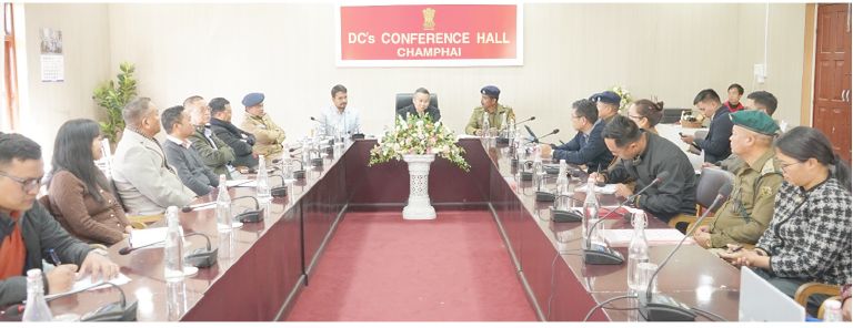 Excise & Narcotics Minister Lalnghinglova Hmar hovin nimin khan DC Conference Hall, Keifangtlangah Champhai sawrkar leh khawtlang hotuten ruihhlo do chungchang an sawi ho a, Champhai Bawrhsap Mohammad Aaquib chuan meeting a kaihruai.