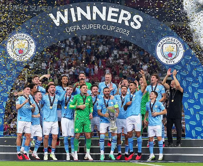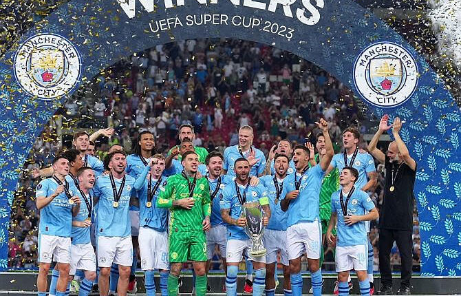 Nilaini Uefa Super Cup-ah Uefa Champions League trophy hawntu Manchester City leh Eu-ropa League title kawltu Sevilla chu Greece ram khawpui Athens-ah in-tumin, hun pangngai tawp thlenga 1-1 a nih hnu penalty petah 5-4-in Eng-lish champion an chak.