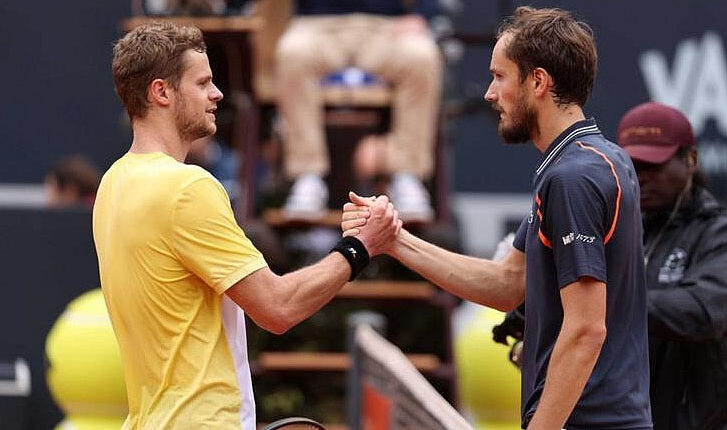 Italian Open quarter-final match pakhatah Russian Med-vedev hian 6-2 6-2-a Germany player Yannick Hanfmann sawp chungin season kal laia a vawi sarihna atan semi-final a lut.