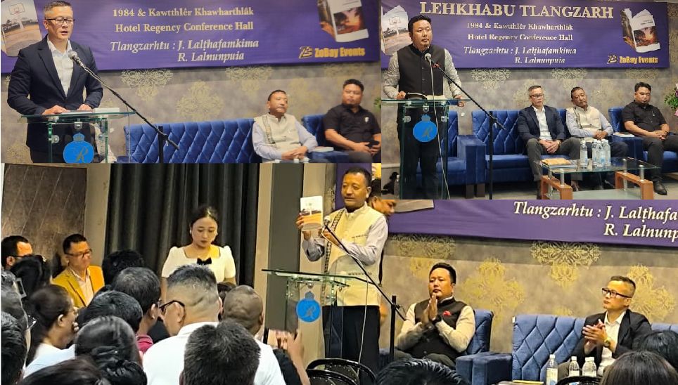 |pa Bunghai hian ‘1984’ leh ‘Kawtthler Khawharthlak’ tih bu hnih a khawrpum chu J. Lalthafamkima (IPS) leh R. Lalnunpuia (MBBA President)-te’n an tlangzarhsak a; H. Lalawmpuia leh Dr. Lalrinsangi Nghinglovate’n lehkhabu an thlirzau ve thung.