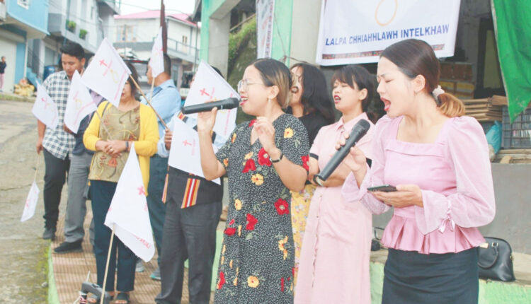 Lalpa Chhiahhlawh Intelkhawm hian khawtinah hnehna aurual neiin, tawngtairual an nei zel a; damlo an tawngtai sak bawk. ‘Thlarau Thianghlim hnathawh ropui tak khawtinah kan hmu a, mipuiin party politics an lo kham tawh zia leh Pathian lal ram sawrkar din an nghahhlelh zia thu an sawi a ni,’ thuchhuah chuan a ti.