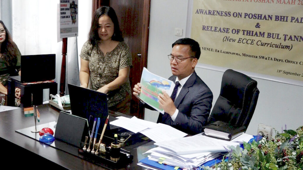 Mizoram puma naupang kum 6 hnuailamten kawng engkima hma an sawn theih nan ECCE (Early Childhood Care and Education) curriculum thar ‘Thiam bul tanna bu’ tih siam a ni a, Thawhtanni khan Social Welfare & Tribal Affairs minister Er Lalrinawma’n a tlangzarh.