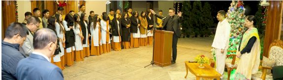 Krismas urlawkna atan Mizoram larsap Dr Hari Babu Kambhampati leh a nupui Jayasree Kambhampati hoin Raj Bhavan-ah Inrinni zan khan Christmas Carol hman a ni a. Aizawl West-I Area Masihi Sangati, Mizoram Presbyterian Church member-te an tel. Larsap-te nupa chuan Mizoram mipui Krismas leh kumthar hun hlimawm tak hmang turin duhsakna an hlan a. Krismas chuan remna leh muanna bakah inpumkhatna thlen se a duh tih larsap a sawi. Aizawl West-I Area Masihi Sangati member 32-in Krismas hla remin malzai, zaipawl leh thuchah ngaihthlak a ni.