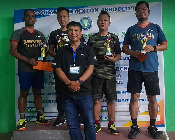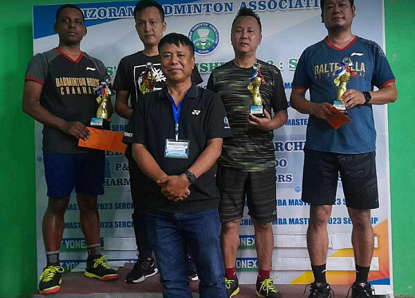35+ men’s singles final-ah Zarzokima, Chanmari Shuttler Club (CSC)-in C. Lalnunpuia (Serchhip Kawnpui Badminton Club) chu 21-13, 21-6-a hnehin awlsam takin a champion a; 35+ men’s doubles-ah Joseph M. Lalrinawma (CSC) nen tangdunin, Lalmuanawma (MPBC) leh Albert Lalnunhlima (Ralte Villa BC)-te tangkawp chu 21-12, 21-16-in, straight set bawkin an hneh.