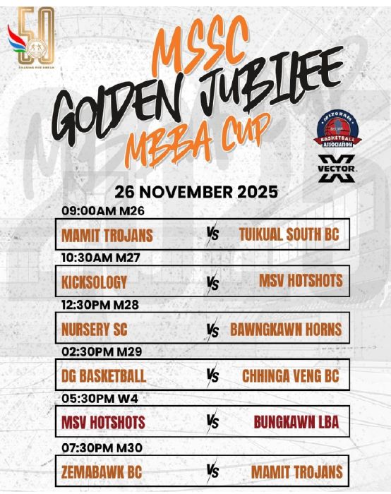 1. Tun tum MBBA Cup hi duhkhawp lohna a awm nghal pang a, ni thum zet inelna neih a nih hnua Hawla Indoor Stadium hman theih loh a nih chungchangah hian khelmual avanga harsatna lo tawk zo hlim ADBBA Cup 2025-ah khan inelna hmun dangah khelh niin, fixture-ah buaina a awm hran lo; amaherawhchu, khelmual dang MBBA hian melh lo va inelna neih hun chhung a pawtsei hi ADBBA lam a tluk lo!