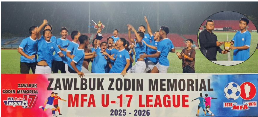 Regional Sport Training Centre (RSTC), Saidan – Kolasib football Academy a awm mek Sporth & Youth Services (SYS) team hian MFA Under 17 League – 2025 ah zin kawng harsa tak an zawh. Point thum paihsak an nih bakah inelna hmachhawn zui thei lovin tla hman hial mah se kaihthawh leh an ni a, ropui takin an champion zui ta hial a ni.