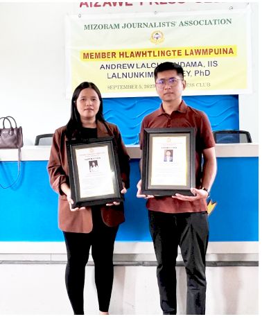 Indian Information Service (IIS) a tling, DDK Aizawl editorial assistant Andrew Lalchhandama leh journalism kaihhnawiha doctorate degree hmu thar East Mojo reporter Lalnunkimi Colney chu lawmpuina an hlan a, chawimawina thuziak leh sumfai Rs. 10000 an hlan. MJA president C Lalrambuatsaiha chuan, eng hna pawh thawk ila, hlawhtling tur chuan taima taka theihtawp chhuah a ngai tih a sawi a. IIS ah MJA member zinga mi a tling thei chu an lawmin an chhuang hle tih a sawi. Taima taka journalism lama theihtawp chhuah a, Phd hial hmu tura Lalnunkimi thawhrimna chu an chhuang tih a sawi bawk.