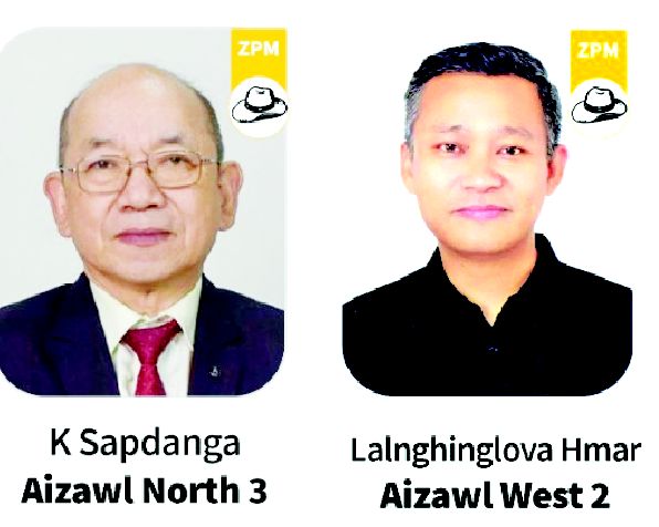Tun tum inthlanah hian Aizawl North III-ah K Sapdanga, Aizawl West II-ah Lalnghinglova Hmar te an tling a, ZPM candidate ve ve an ni.