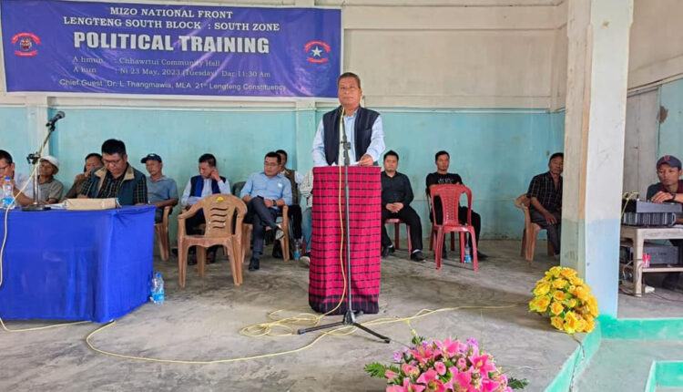 Thawhlehni khan Lengteng South Block: South Zone chuan Chhawrtuiah political training programme an hmang a. MNF Thalai president, Lengteng bialtu MLA Dr L Thangmawia hian hmanpuiin, MNF Thalai vice president Zodinpuia’n a tawiawm.