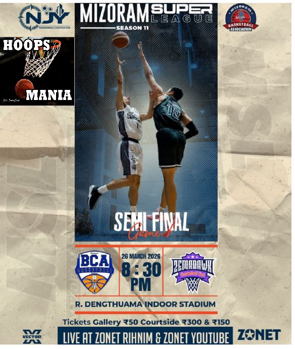 Mizoram Super League (MSL) 11 hmawrbawkna lam a inherchhuak chho tan a, zanin dar 8:30 hian semi finals hnuhnung zawkah Zarkawt BCA lal ram (kingdom) ah tun MSL season 11 a fans nei tha lawrlak Zemabawk BC an lut dawn – game 3 khelh tura ruahmanah hian vawi hnih chak hmasa zawkin MSL 11 finals an lut ang.