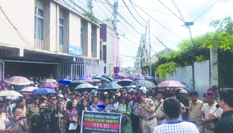Mizoram sawrkar hnuaia thawk, pension dan thar hmangtu – Mizoram Movement for Old Pension Scheme (MIMOPS) chuan Nilaini khan Old Pension Scheme hman phutin Chief Minister Office luhna gate bulah an pungkhawm a, vawiin – Ningani chawhnu dar 1.00 thleng sawrkar thuchhuak an ngaichang dawn.