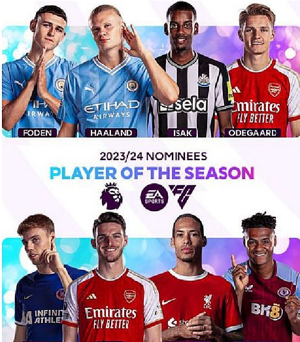 Tarlan tak angin, Haaland, Foden, Palmer leh Isak-te hi Premier League young player of the season shortlist zingah Arsenal forward Bukayo Saka leh defender William Saliba, Manchester United midfielder Kobbie Mainoo leh Tottenham defender Destiny Udogie-te nen an awmho.