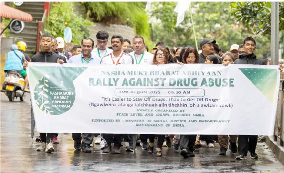 Nasha Mukt Bharat Abhiyan (Drugs Free India Campaign) Mizoram state level leh Aizawl district level bultumin Aizawla school leh college hrang hrang atanga zirlai 600 chuangin Nilaini khan ruihhlo do kawng an zawh a. Chief minister Lalduhoma’n a telpui. Hmun hnih – Chanmari leh Sikulpuikawn atangin zawh a ni a, Lammualah lutkhawmin rally kharna inkhawm neih a ni. Chanmari atanga kawng zawhte hi chief minister hian a vailiam a, an zingah tel ve nghalin Lammual thleng a kal.