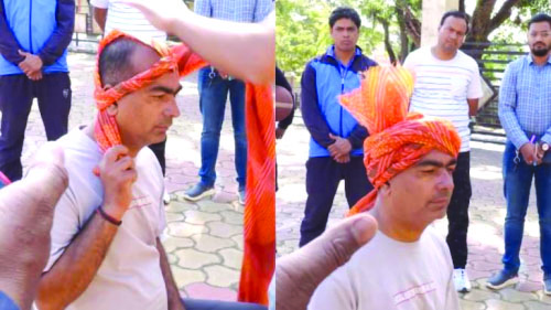Madhya Pradesh a cheng Aditya Pacholy erawhin a hnehsawh khawp mai, chutihrualin turban veh dan pawh hi a chi hrang a awm ve a, Aditya’n record siam nana a hman hi Rajputi Rajasthani Pagdi an tih ang chi a ni