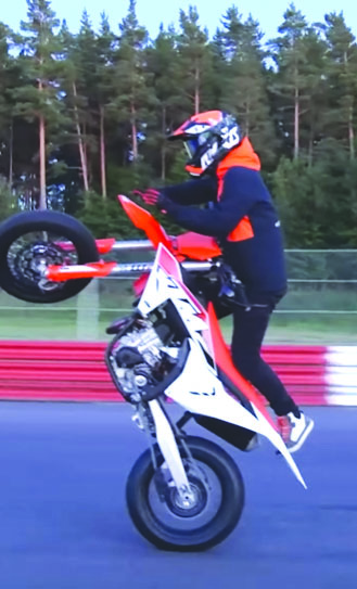 ‘Wheelie’ an ti a, chu chu bike hma chawia tlan tihna a ni mai. Bike khalh thiam nazawngin a hma chawi an thiam kher lo, feet hnih khat a hma chawi chunga han tlan te chu te ve mai thei erawh an kat ve nuk ang, mahse, Swedish motorist Elliot Grondahl chuan bike hma chawi satliah pawh ni lo, vuan lo va a hma chawi chunga tlan thui thei record a siam.