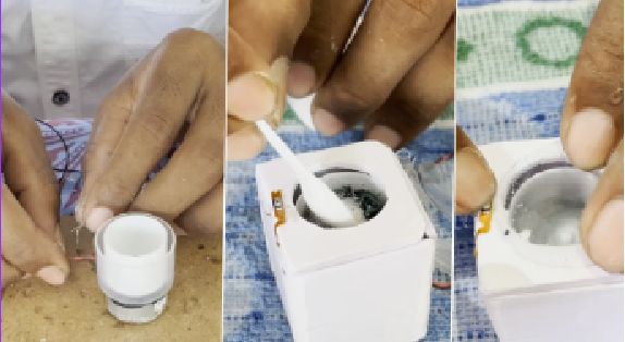 He washing machine tê ber hi Sai Tirumalaneedi siam a ni a, ani hi Andhra Pradesh a cheng niin, a suangtuahna tipuitlingin khawvela wahsing machine tê ber hi a siam ta a ni. He washing machine hi 37 mm x 41 mm x 43 mm (1.45 in x 1.61 in x 1.69 in) leka lian a ni a, kutphaha hum bo tham leka lian a ni.